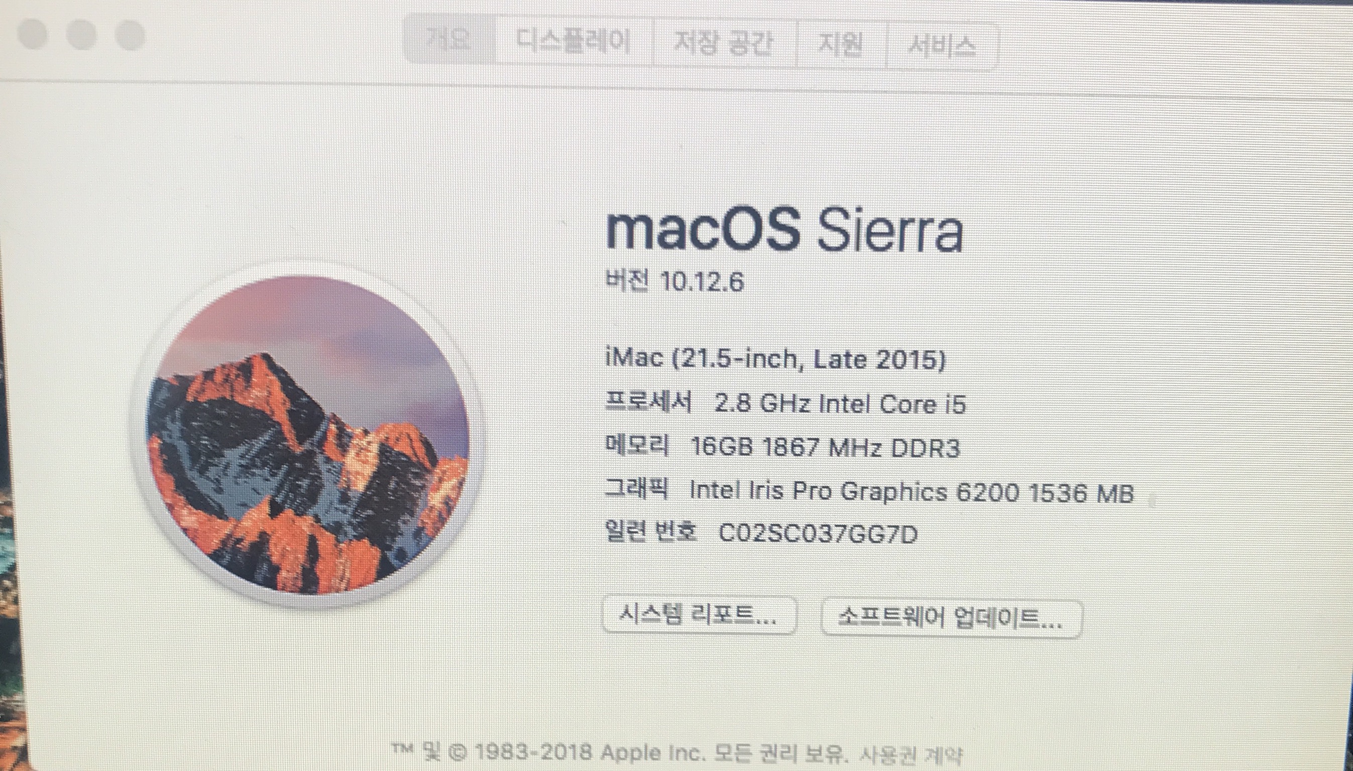 아이맥 2015 late 21.5 메모리 16GB