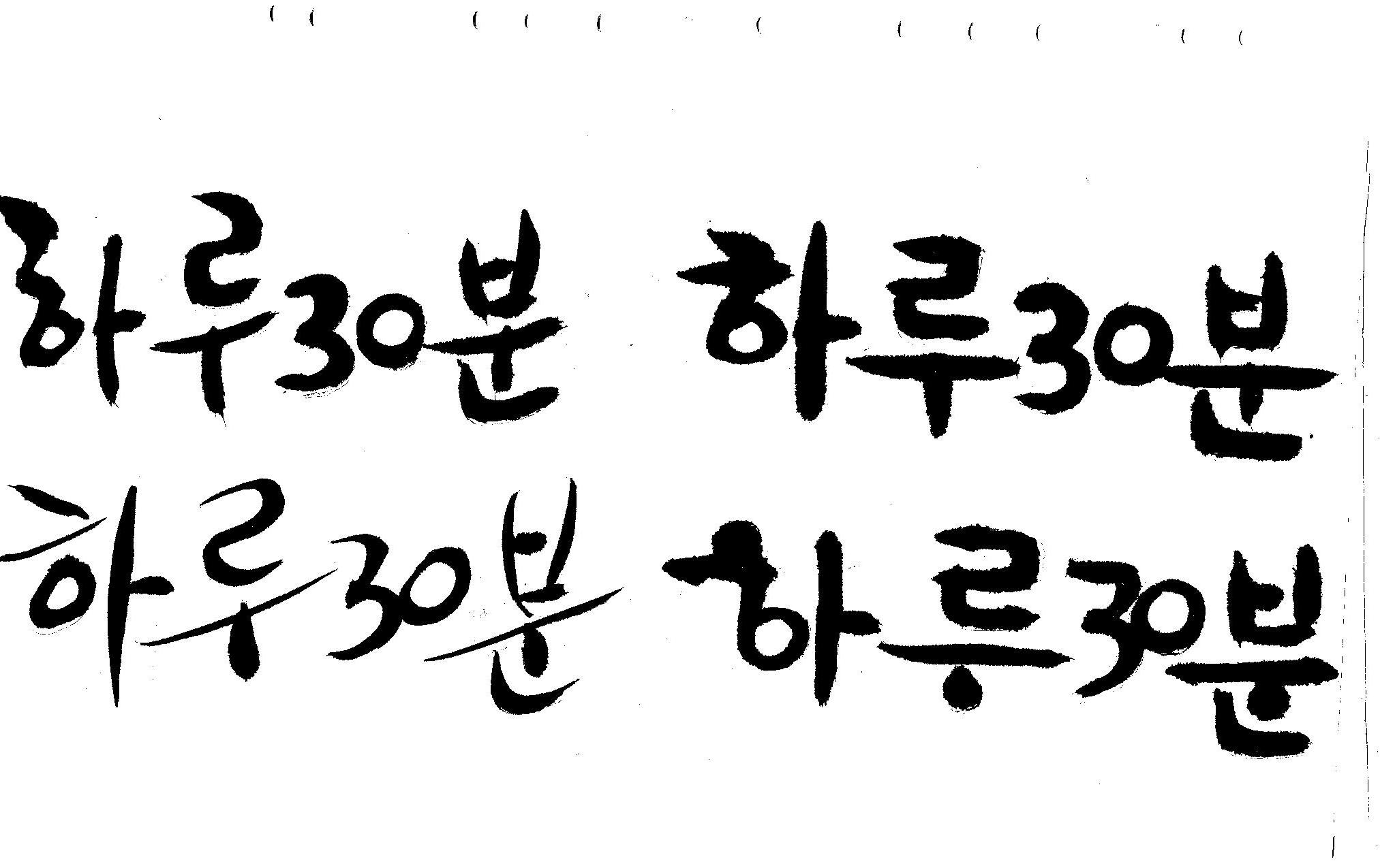 캘리부탁드려요 김철호 일반 0 6585 2008.12.31 13:43 > > 하루30분 <------- 이걸 캘리로 부탁드립니다 > 희망찬 새해 되세요... 스캔이 삐딱하게 되어 손좀 보셔야겠네요..